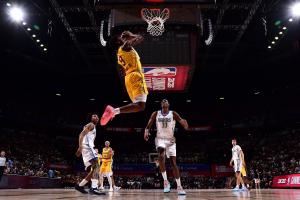 这照片帅!布朗尼空接反身扣篮 可惜脱手了