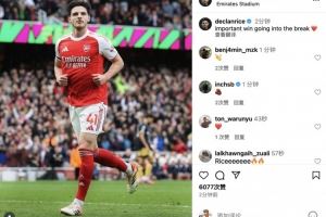 赛后,赖斯更新社交媒体晒照庆祝胜利,并配文写道:带着一场重要的胜利进入休整期❤️